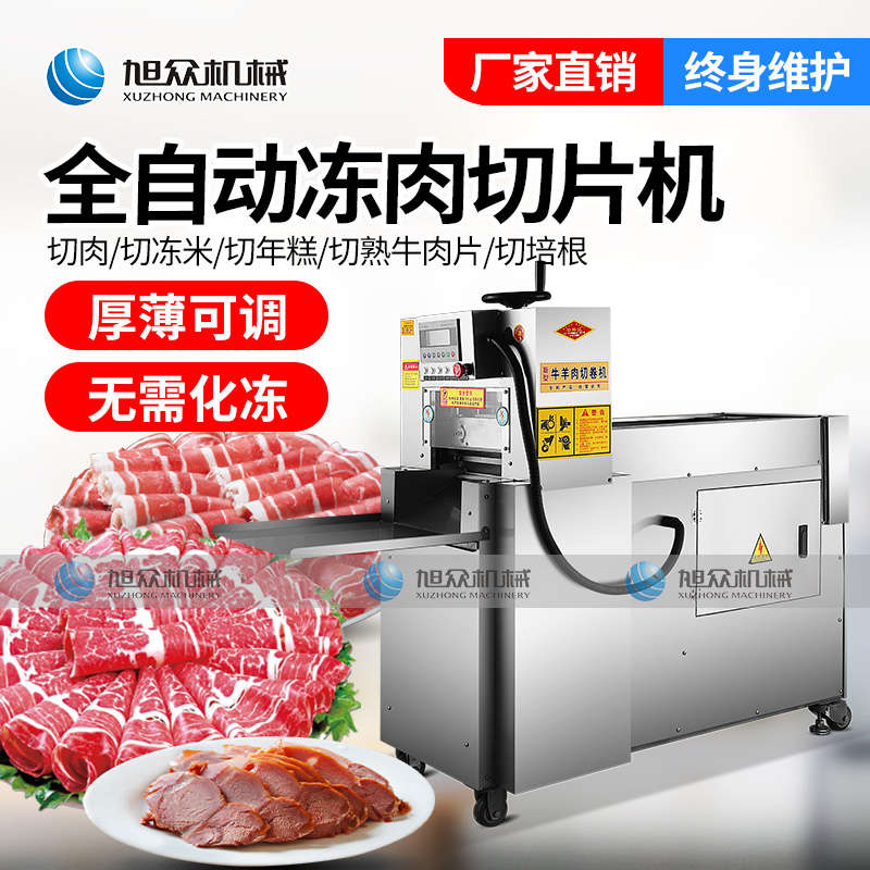 XZ-羊肉切片機(jī),一次成片切片神器,全自動(dòng)凍肉數(shù)控切片機(jī),肉片自動(dòng)打卷|厚薄可調(diào)|無需化凍|一機(jī)多用。你還用手工切片嗎?旭眾全自動(dòng)羊肉切片機(jī)一機(jī)多用,輕松解決切割問題。